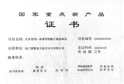 2011年盐酸贝那普利国家火炬计划项目
